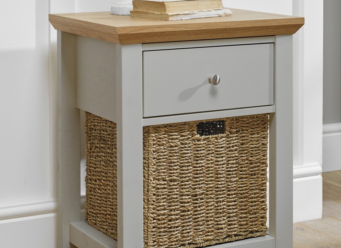 Add a classic and practical furniture piece to your living room with the Devon Lamp Table. The chamfered edge top in an oak finish paired with the grey or cream body makes for a great addition to your furniture. The drawer and space for the basket is perfect for those looking for extra storage or somewhere to keep living room essentials. This piece looks great next to any sofa or standing on its own.
