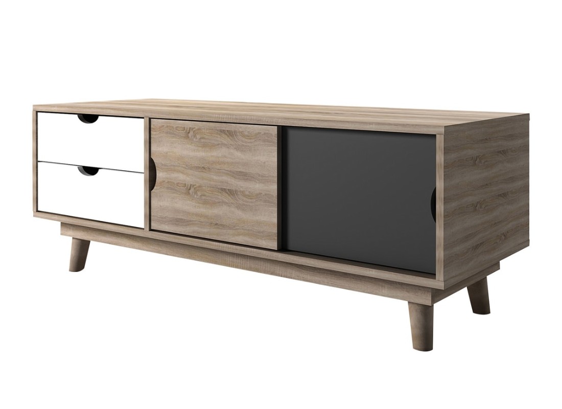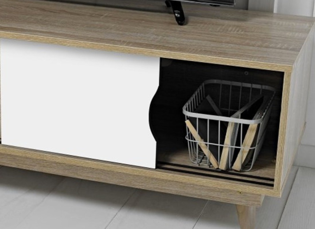 Our Snowdon TV Unit provides great space for your TV essentials and looks amazing in any interior. The unit has two spacious drawers on the left and two sliding doors to offer extra storage. Available in two colours, the combination of grey or white with oak wooden design creates a simple and stylish look to your home. The sliding drawers are great for storing TV boxes and DVD players and can make your home look neat and organised.